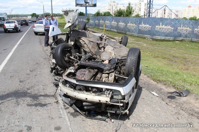 В ГАИ Минска нам рассказали версию очевидцев произошедшего. По их словам, водитель до столкновения несколько раз совершал резкие маневры. В итоге из крайней правой полосы он на большой скорости резко перестроился в крайнюю левую, где в это время работала дорожная техника. Два грузовика были обозначены и двигались со скоростью около 20 км/ч. Водитель Audi не смог среагировать и совершил столкновение.