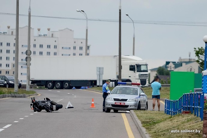 Обстоятельства происшествия корреспонденту Onliner.by рассказал Артем Цыбулько, инспектор пресс-службы ГАИ ГУВД Мингорисполкома: «Двигаясь от МКАД к проспекту Победителей на мотоцикле Honda, мужчина 1964 года рождения неправильно выбрал дистанцию до впереди едущего автомобиля Renault Scenic и допустил столкновение. В результате ДТП водитель мотоцикла получил травму в виде перелома ключицы».