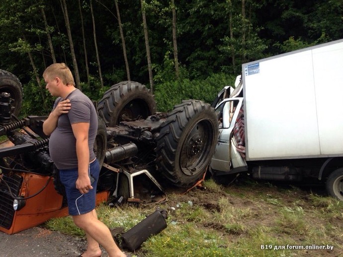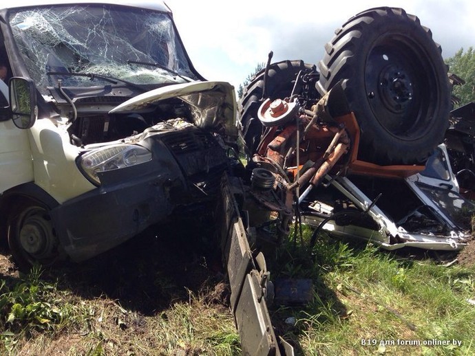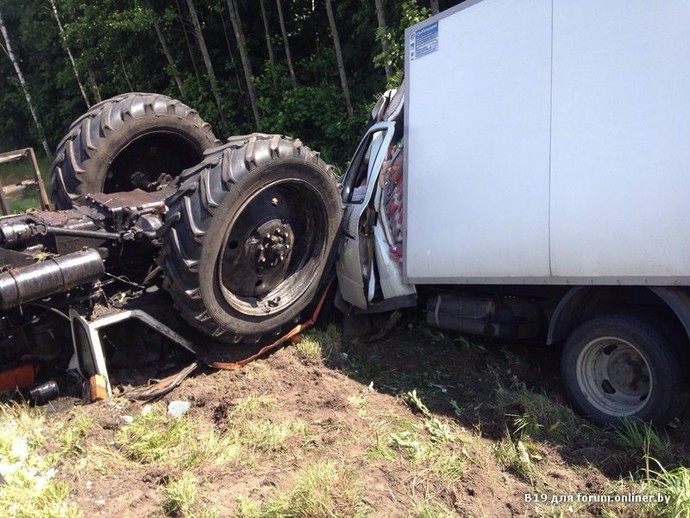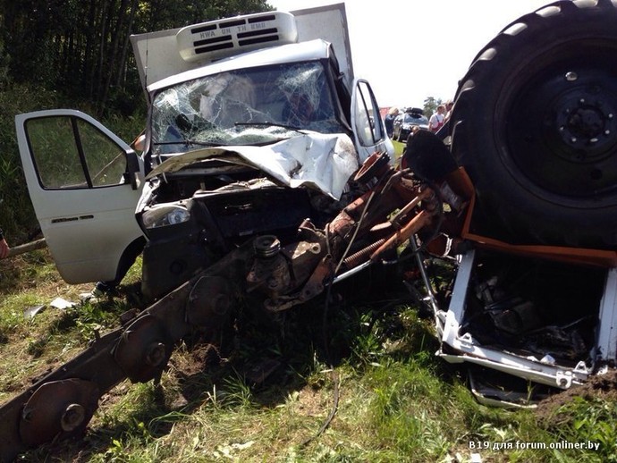ДТП случилось вчера около 14:30 на трассе Брест — Минск — граница РФ, недалеко от поселка Центральный Смолевичского района. В УГАИ МВД сообщили предварительную версию: «„Газелью“ управлял гражданин Украины, мужчина 1982 г. р. Он допустил столкновение с двигавшимся в попутном направлении трактором. В результате ехавший в грузовой машине гражданин России, молодой человек 1992 г. р., и водитель помещены в больницу. Спустя 4,5 часа водитель скончался».