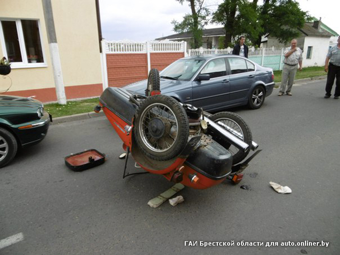 «Вчера около 14:30 по улицам Пружан на Jawa 350 ехал местный житель 1935 г. р., — рассказали в ГАИ Брестской области. — Предварительно установлено, что мужчина неправильно выбрал боковой интервал до стоящего у правого края проезжей части возле бордюра BMW 3-Series. Мотоциклист допустил столкновение с автомобилем, после чего опрокинулся».
