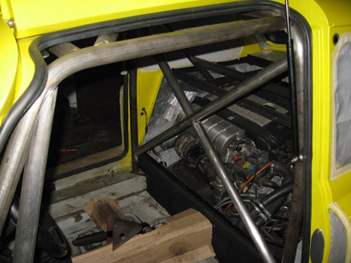 Новый мотор потребовал изменений всех узлов и агрегатов, в итоге получился настоящий «корч» — не хватало разве что каркаса, однако и он не заставил себя долго ждать. «Места в машине очень мало, так что пришлось повозиться с подгонкой к кузову. По весу каркас получился примерно 60—70 кг. Печально, однако, пришлось отказаться от музыки в пользу безопасности. Да и ведь какая может быть музыка в гоночной машине».