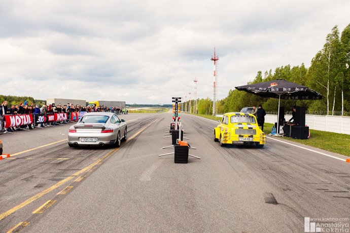 Первое серьезное испытание «желток» прошел в родном Гомеле. Проехав 30 километров до аэродрома, где проходил автофестиваль, ЗАЗик заглох: отказал подкачивающий насос. Проблему решили на месте, и «Запорожец» достойно выполнил первый показательный заезд со своим одноклассником во время соревнований по драг-рейсингу. Вот тут-то все и закрутилось.