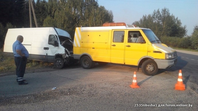 Вблизи деревни Кирши Минского района столкнулись микроавтобусы Mercedes Sprinter и Iveco Turbo Daily. Mercedes управлял минчанин 1989 года рождения. Он ехал в направлении Заславля. Ему навстречу двигался Iveco под управлением водителя 1986 года рождения.