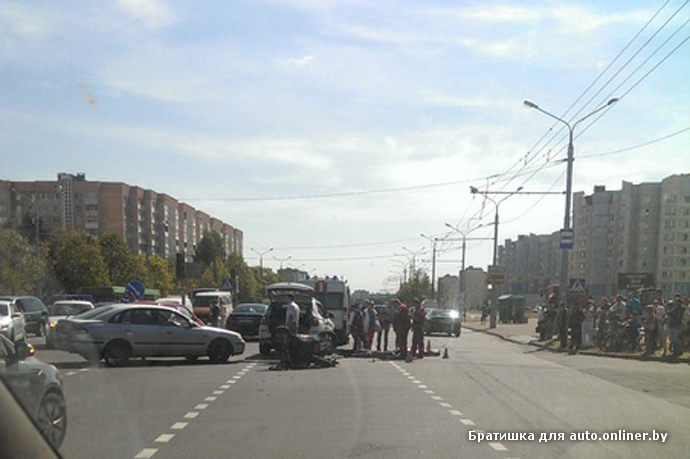 Авария произошла сегодня днем на перекрестке улиц Лобанка и Бурдейного в Минске, сообщают пользователи нашего форума. Столкнулись мотоцикл и BMW. Удар пришелся в двери с пассажирской стороны автомобиля. Мотоциклист погиб на месте ДТП.