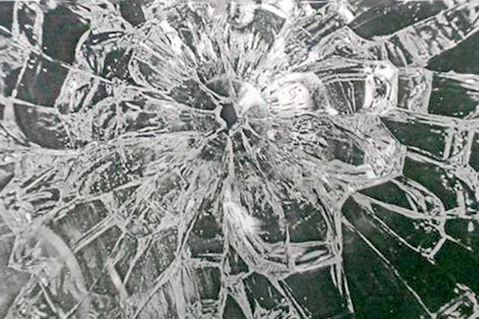 По его словам, в стекле на уровне макушки сидящего человека было отверстие. Само стекло не разбилось, а потрескалось «паутинкой».