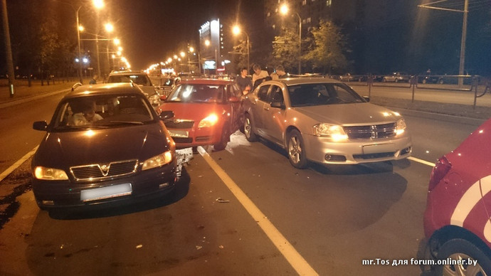 Вчера, 30 августа, около 22:00 на проспекте Пушкина случилось ДТП с участием четырех автомобилей. Как сообщили корреспонденту Onliner.by в ГАИ Фрунзенского района, нетрезвый водитель Mercedes из-за несоблюдения дистанции врезался сзади в Skoda, а ту отбросило на два стоящих впереди автомобиля.