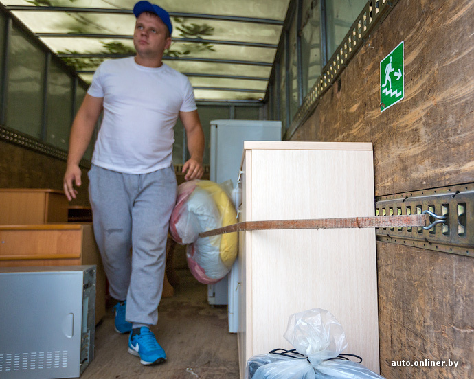 «Часто переезжают те, кто снимает квартиру. Нашли более подходящий вариант, снялись с места, загрузились и переехали. Повзрослевшие дети переезжают от родителей. Нередко заказывают машину студенты: отучились в Минске — собирают вещи и уезжают домой. Так возили несколько человек в Витебск, да и в другие города тоже. За несколько лет успели обжиться, обрасти вещами. На поезде всего не увезешь. А мы работаем по всей стране. Да что там стране: недавно возили пожилую пару в Санкт-Петербург. Они все бросили, продали здесь квартиру и с пожитками переехали к внуку в Россию», — рассказал Евгений.