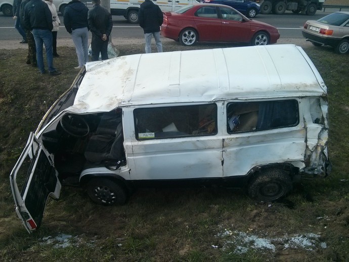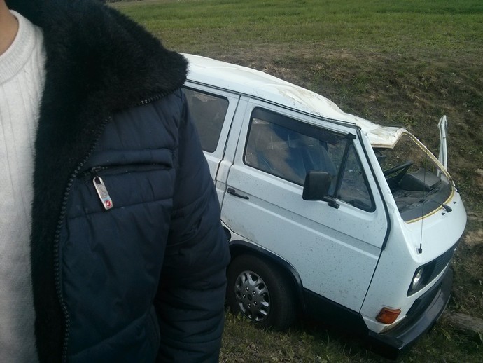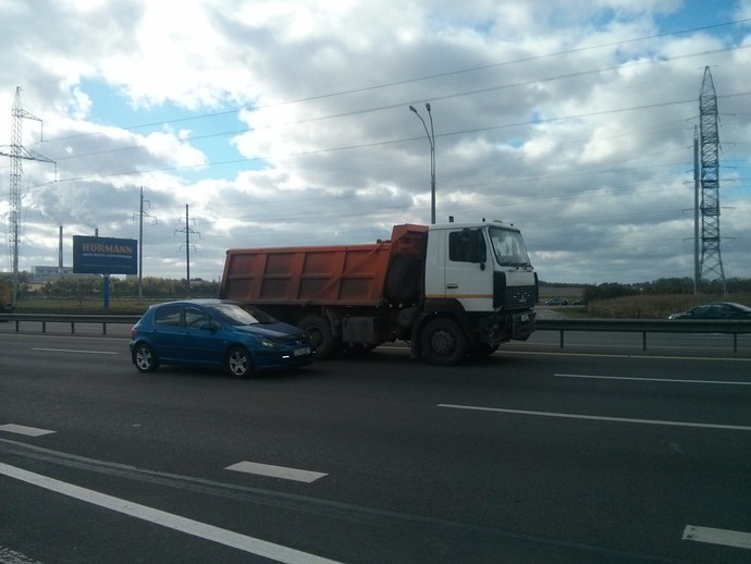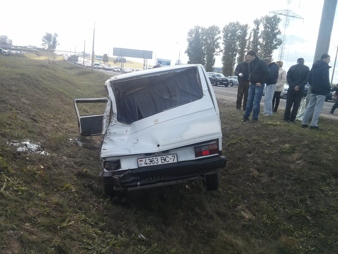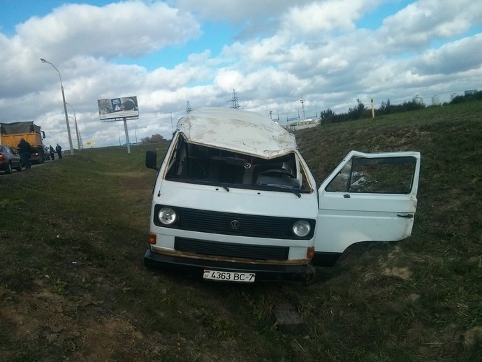 Очевидцы поделились видео происшествия, которое случилось в субботу утром на внутреннем кольце МКАД. Напомним, перед съездом на Мазурова груженый щебнем МАЗ, не успевая затормозить перед микроавтобусом Volkswagen T3, попытался объехать его слева, но задел. От удара микроавтобус понесло в правую полосу и затем, с переворотом, в кювет.