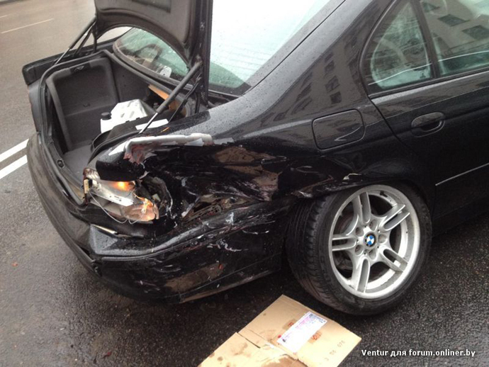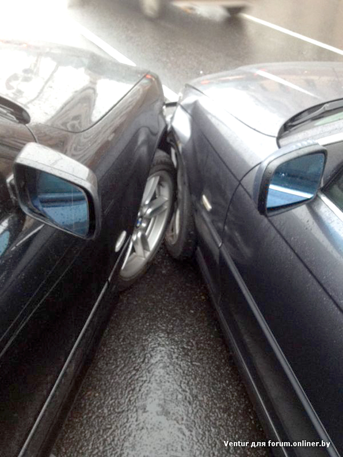 Погода мгновенно внесла коррективы в дорожную обстановку. Буквально вторые сутки в Минске пасмурно, асфальт мокрый. Кто-то воспользовался этим, чтобы подрифтовать. У других — обратная проблема. Водитель BMW, к примеру, не удержал автомобиль, проезжая круг площади Победы. Машину занесло, и она выехала на встречную полосу, где в тот момент двигались другие авто. В результате случилось ДТП, три машины получили повреждения.