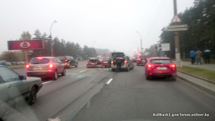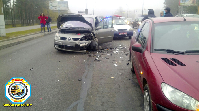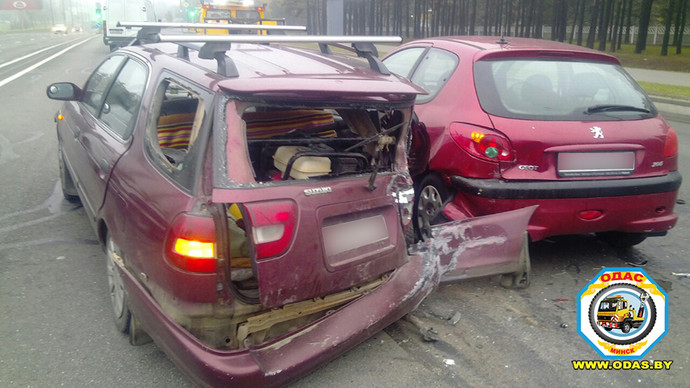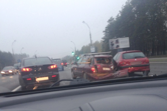 ДТП произошло недалеко от городской черты, где-то на 6-м км проспекта. Мужчина, водитель Renault, двигался в направлении центра Минска в средней полосе. На проспекте загорелся красный сигнал светофора, машины остановились. «Мужчина за рулем Renault, предварительно, вовремя не затормозил. К тому же дорожное полотно мокрое, сцепление ухудшилось. В результате он въехал в стоявшую на светофоре Suzuki, а та от удара продвинулась вперед и столкнулась с Peugeot», — рассказала Екатерина Журимская.
