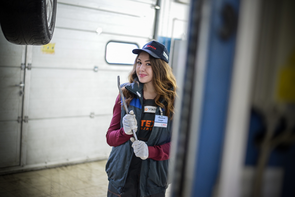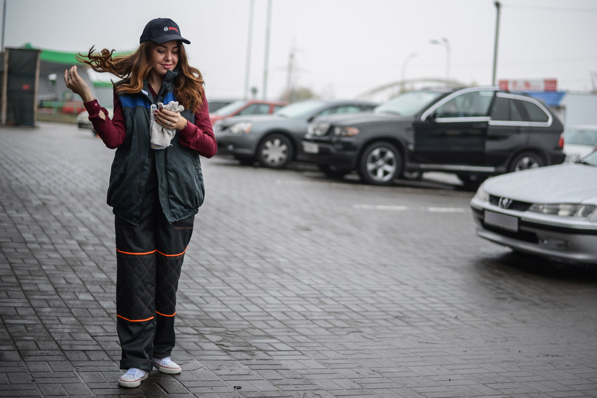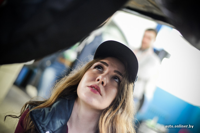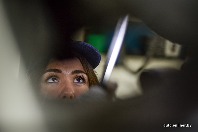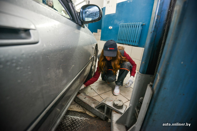 Работа с техникой всегда считалась неженским занятием. Профессия сотрудника станции техобслуживания может возглавить топ «девушкам здесь не место». Onliner.by предложил Кристине, менеджеру сети по продаже косметики и парфюмерии из Минска, попробовать себя в этом нелегком деле, чтобы понять, так ли сложна профессия, как ее описывают. На возможность временного трудоустройства девушка отреагировала решительно: «Мой личный Audi A6 находится в ремонте. Так что я с удовольствием поучусь, например, сливать масло. Ведь это не испортит мой маникюр?» Хорошо, что мы не стали ничего обещать.