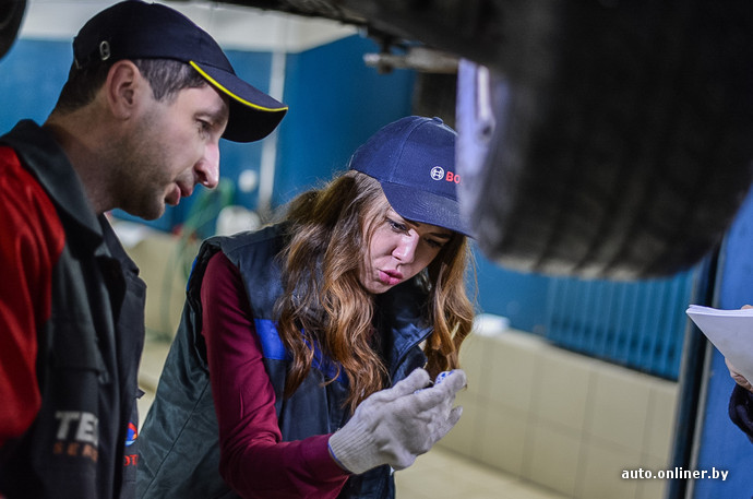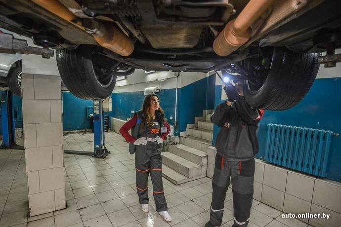 «Здесь не дворец бракосочетаний, — инструкция от специалистов станции началась весьма нестандартно. — Нет однозначного ответа, нет точки невозврата. Ищешь одну неисправность — находятся другие. Заметит их не каждый. Вот вы, Кристина, хорошо знакомы с механизмами подвески? [вопрос был явно риторическим. — Onliner.by] Сегодня познакомитесь. Проследите за машинами от стадии приема заказа до непосредственно самой работы. Наше дело — это труд, который, как и любой другой, требует специальных знаний. Допустима ли тут самодеятельность — решите сами для себя в конце этого дня. Готовы?»