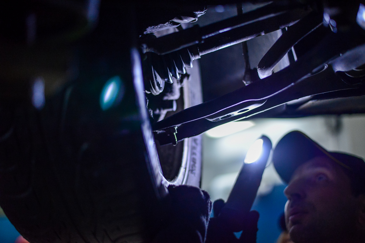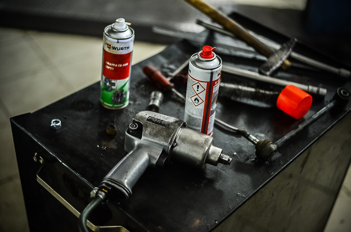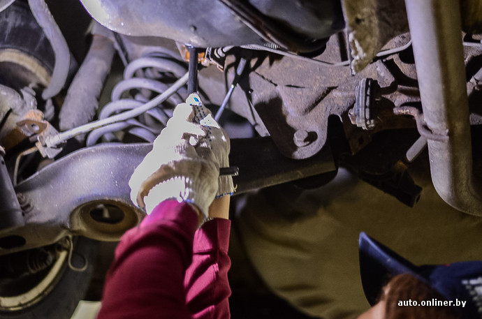 На десять минут Кристина прячется за колесом, раздается лязганье железа, стук трещоточного гаечного ключа. Довольная девушка приглашает нас оценить результаты ее труда: «Обалдеть! Я сделала это! Только посмотрите, какая красивенькая, новенькая тяга стабилизатора». Мы наблюдаем, как блестит свежеустановленная деталь на фоне старых. Андрей на всякий случай перепроверяет работу: все в норме. Первый блин оказался не комом.