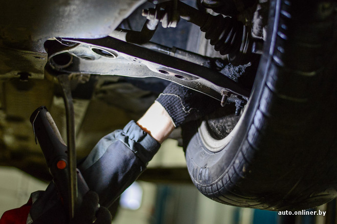…А за воротами бокса уже ожидает Volkswagen Golf. Его пригнали на «предзимнюю» диагностику и — по необходимости — ремонт. Среди пожеланий клиента значился и развал-схождение. Кристина повторяет действия у подъемника и обнаруживает, что в хетчбэке места под лапки подъемника предусмотрены в других местах. «Это мелочь, — перехватывает взгляд девушки Андрей. — Сейчас увидишь подвеску — там все по-другому. У BMW ведь многорычажка, в отличие от Golf».