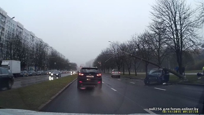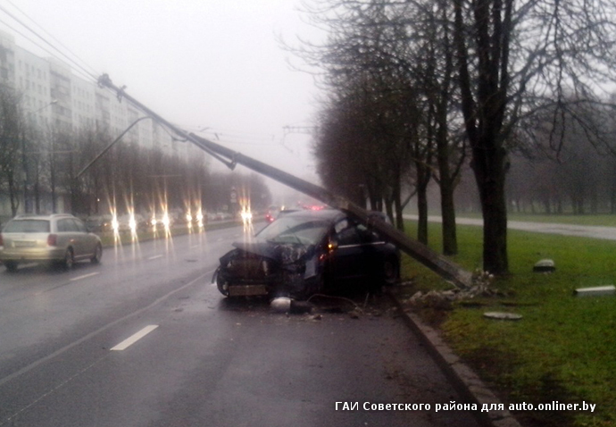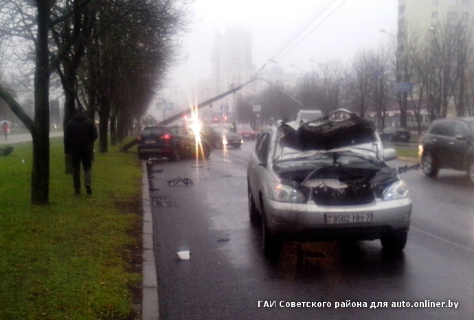 На момент 11:00 в районе столичной площади Бангалор еще велись работы по устранению последствий аварии, произошедшей в 9:30. Троллейбусы стояли: контактная линия оказалась повреждена, и движение стало невозможным. Сам поврежденный столб от удара надломился у основания и упал в сторону проезжей части, повиснув на проводах. Две полосы ул. Богдановича оказались перекрыты. Таковы последствия одного неудачного перестроения, сообщили в ГАИ предварительную версию.