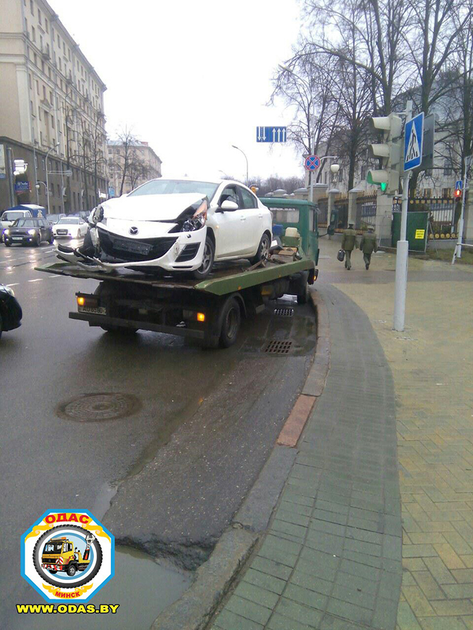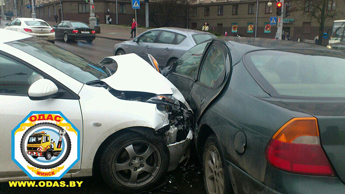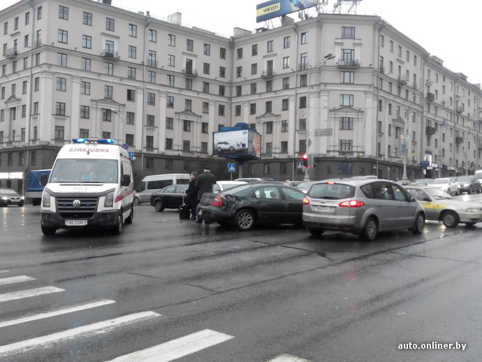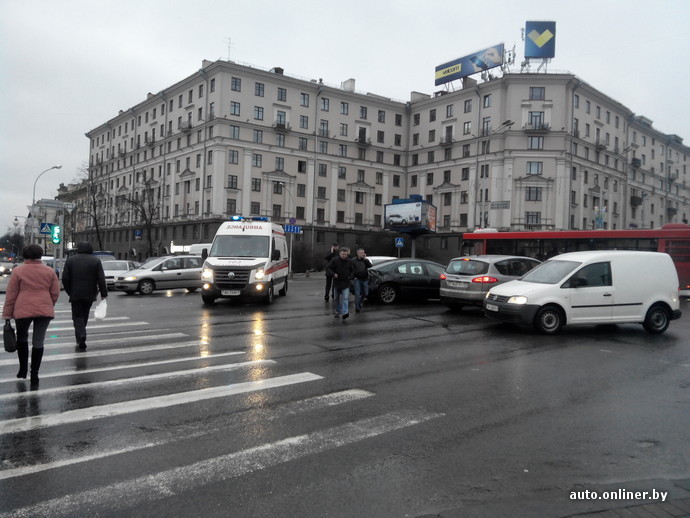 — Водитель Mazda, мужчина 1973 года рождения, двигался по проспекту Независимости со стороны улицы Ленина в направлении площади Победы. По предварительной информации, он выехал на перекресток на запрещающий сигнал светофора и совершил столкновение с автомобилями Chrysler и Suzuki. Обе эти машины двигались по улице Янки Купалы со стороны улицы Карла Маркса в направлении улицы Интернациональной и выезжали на перекресток на зеленый свет, — рассказали в ГАИ.
