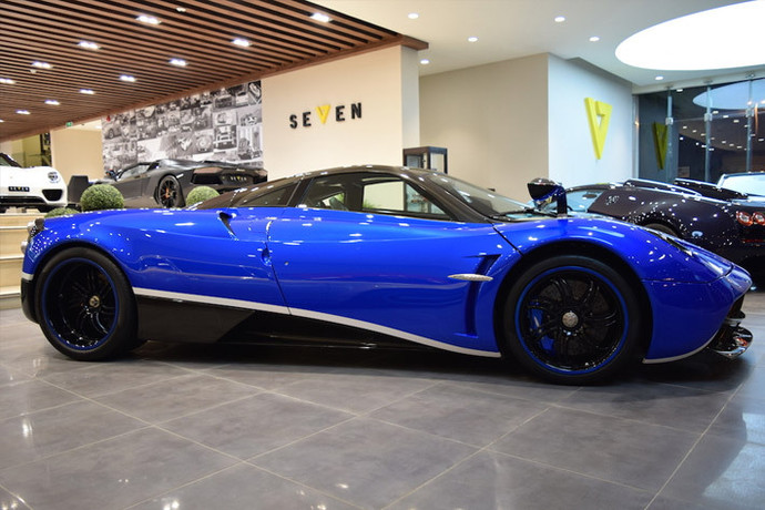 Этот Pagani Huayra несколько раз был замечен в Лондоне возле дорогих отелей. В настоящее время машина катается по Ближнему Востоку, а вскоре состоится аукцион по продаже суперкара в Саудовской Аравии. Машина окрашена в голубой цвет и имеет белые полоски по бокам. Весь кузов щедро осыпан карбоновыми деталями. Диски черного цвета с голубой окантовкой.