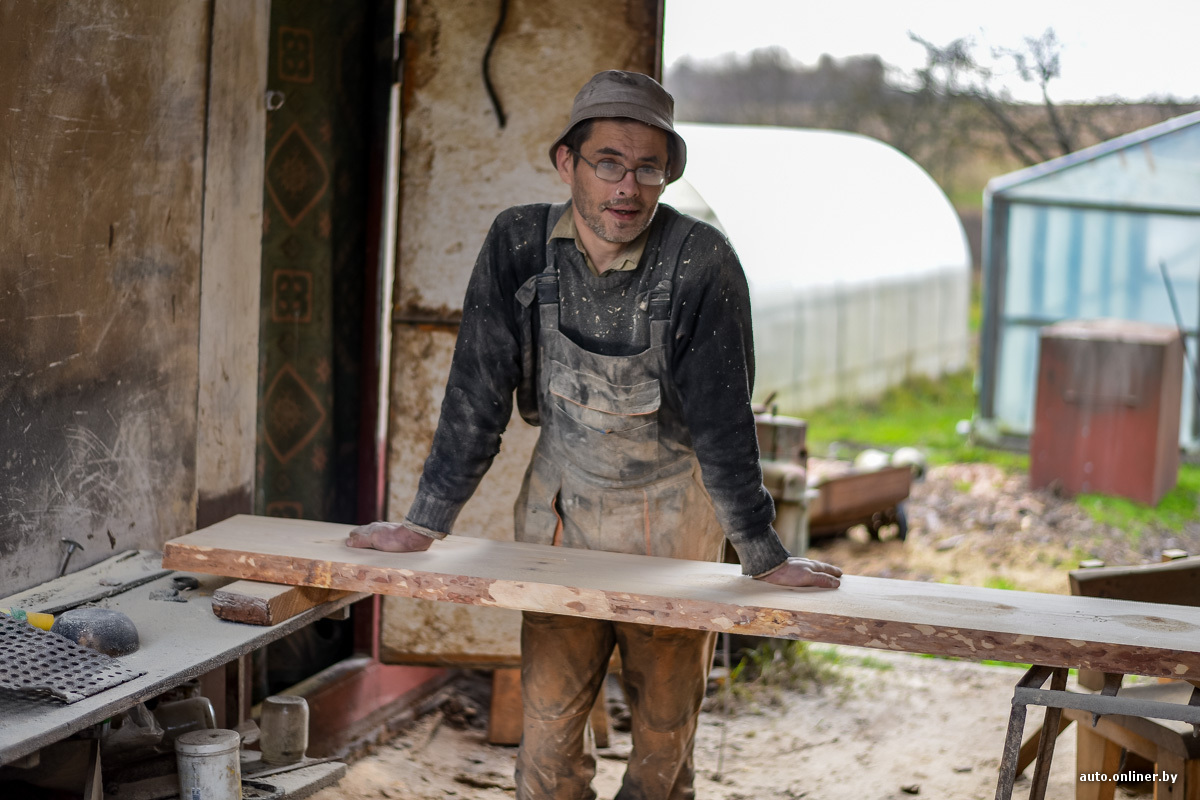А это Николай, один из тех, кому дорога по-настоящему нужна. Он живет в Минске, в деревне работает — делает мебель. Говорит, когда велось строительство МКАД-2, приходилось добираться пешком из Заславля. Мужчина тоже делает акцент на плохом подъезде к деревне, а еще уповает на то, что обслуживать трассу будут хорошо: в прошлые зимы местные дороги заносило и проехать было решительно невозможно.