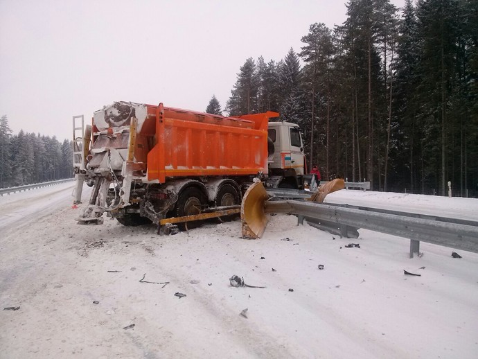 ДТП на второй кольцевой: опережавший дорожную технику водитель грузовика Volvo не заметил дополнительный снегоуборочный отвал