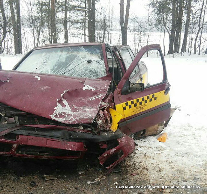 «За рулем Passat находился мужчина 1977 г. р., двигался в сторону Жодино, — сообщили в ГАИ Минской области. — На участке дороги с ограниченной видимостью и в зоне действия дорожного знака „Обгон запрещен“ он приступил к маневру обгона дорожной техники, осуществляющей уборку снега. На подъеме водитель не справился с управлением, авто вынесло на полосу встречного движения, где оно столкнулось с такси».