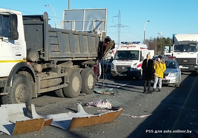 По данным очевидцев, водитель микроавтобуса допустил столкновение с машиной прикрытия дорожников. От удара по касательной траектории вся правая сторона Mercedes оказалась срезана и смята. Как удалось выяснить Onliner.by, с водителем все в порядке, он получил только несколько царапин.