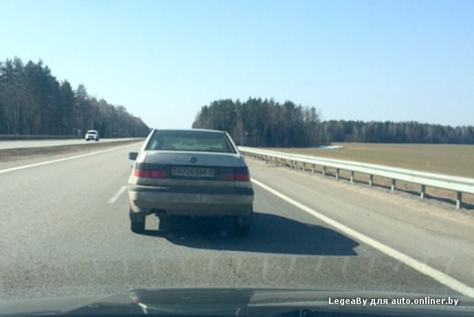 Пользователь нашего форума с ником LegeaBy 27 марта ехал по трассе М1 (Брест — Минск — граница России). В крайней левой полосе ему помешал Volkswagen, который ехал со скоростью около 60 км/ч — пришлось оттормаживаться. Наш читатель опередил эту машину по правой полосе, предполагая проучить «тошнота», и увидел, что за рулем Volkswagen на коленях у водителя сидит ребенок.