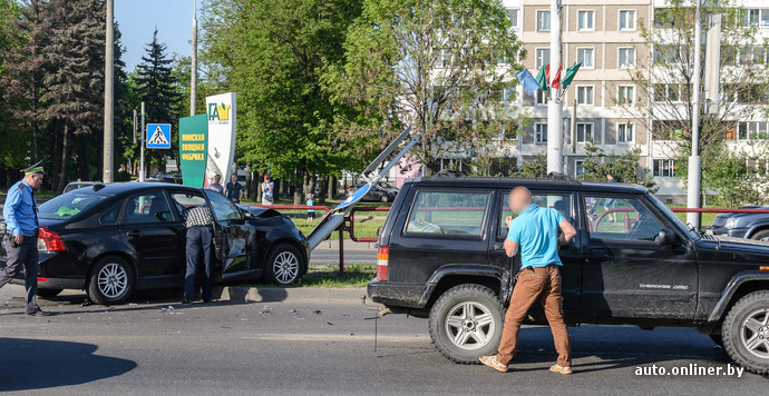 Авария случилась вчера в вечерний час пик. На перекрестке Партизанского проспекта и улицы Молодежной столкнулись автомобили Volvo и Jeep Cherokee. Никто не пострадал. Обстоятельства произошедшего корреспонденту Onliner.by сообщила старший инспектор ГАИ Заводского района Татьяна Лапко.
