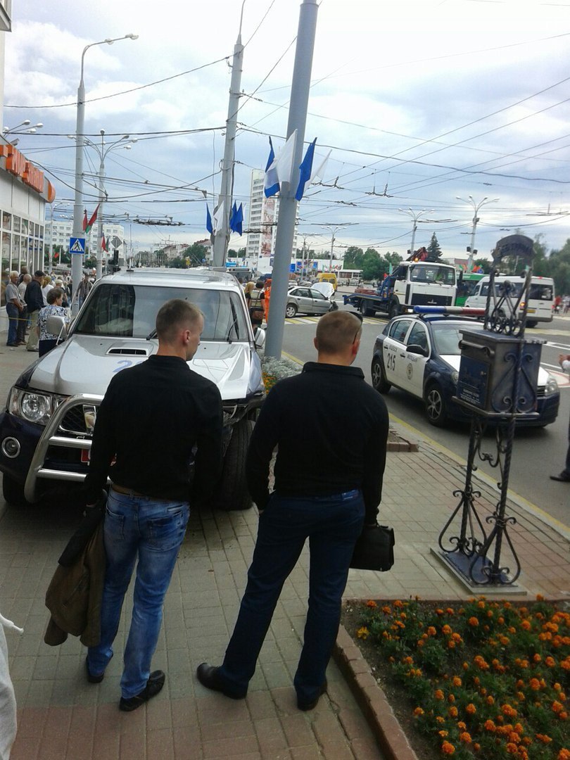 Позже появилось официальное сообщение от УВД Витебской области. «14 июля около 17:10 на перекрестке улиц Ленина — Жесткова в Витебске произошло столкновение двух легковых автомобилей, один из которых — служебный автомобиль ГАИ оперативного назначения, — говорится в сообщении. — За рулем второго автомобиля Renault находился мужчина 1953 года рождения. После столкновения патрульный автомобиль выбросило на тротуар, где произошел наезд на женщину (1952 г. р.). Ее с ушибами и переломом правого предплечья госпитализировали в витебскую областную больницу для дальнейшего обследования и прохождения курса стационарного лечения. На данном перекрестке осуществлялось регулирование дорожного движения регулировщиком. Проводится проверка как по факту ДТП, так и служебная проверка в отношении сотрудников ГАИ».