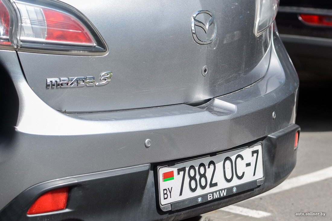 Поэтому некоторые то ли нарочно, то ли случайно (допустим, другой не нашлось) устанавливают рамки от других марок. Получается немного по-самозвански, но никакого нарушения ПДД нет. Так, мы повстречали Mazda-BMW рядом с ул. Кальварийской и Ford, «прикинувшийся» Bentley.