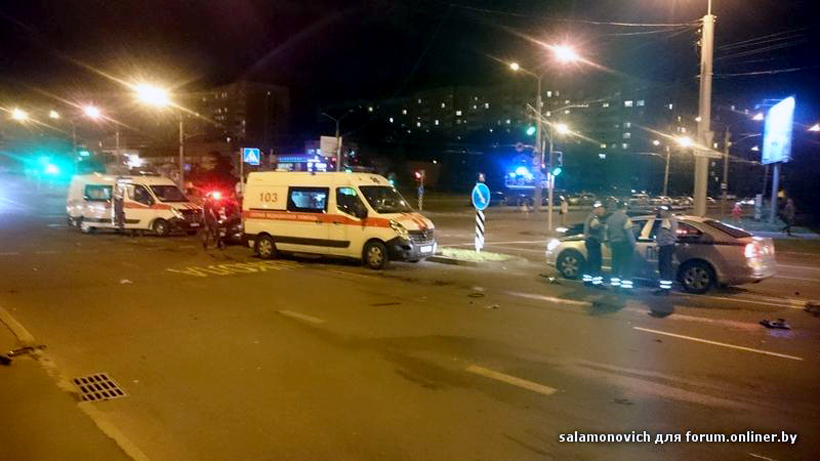 Вчера вечером в Минске на перекрестке улиц Якубовского и Одинцова произошла авария. На место сразу же прибыли несколько скорых, экипаж ГАИ. Пострадавшим оказывали помощь. По предварительной информации, пострадали пять человек. По факту ДТП проводится проверка.