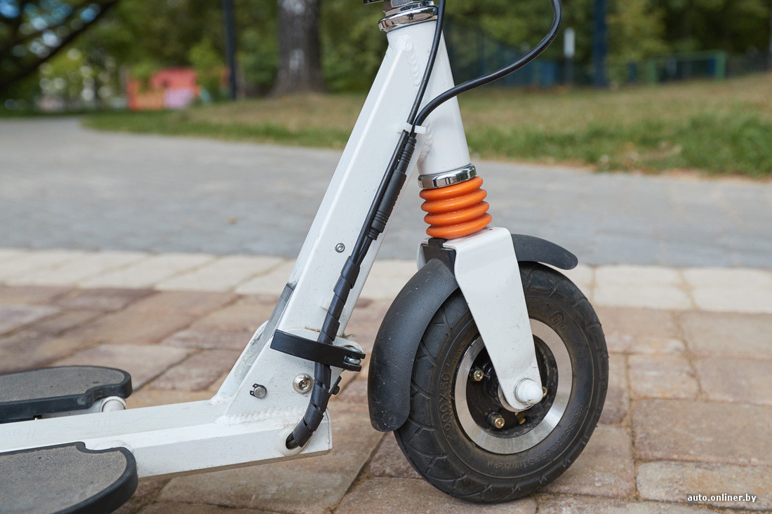 Диаметр колес у Z3 — 203 мм, и этого достаточно, чтобы соблюсти баланс «переносных» габаритных размеров и комфорта при езде по плитке. Сами колеса камерные, хорошо «проглатывают» неровности и не боятся колеи (между плиток тротуара). Самокат без труда передвигается по утоптанной земле и не пасует перед невысокими бордюрами — главное, чтобы хватило дорожного просвета. Заряжается от обычной розетки за 1,5—2 часа.