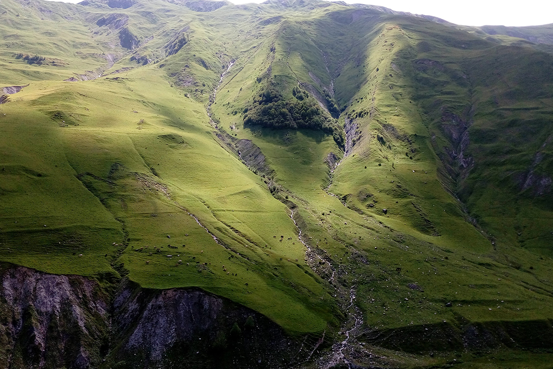 Военно-Грузинская дорога является единственной официальной, ее дублирует множество серпантинов среди гор и вдоль рек. Хотелось останавливаться на каждом повороте и любоваться. Местная особенность — за поворотом могут загорать коровы или гулять бараны, можно попасть в глубокие ямы или в одном месте встретить все вместе взятое.