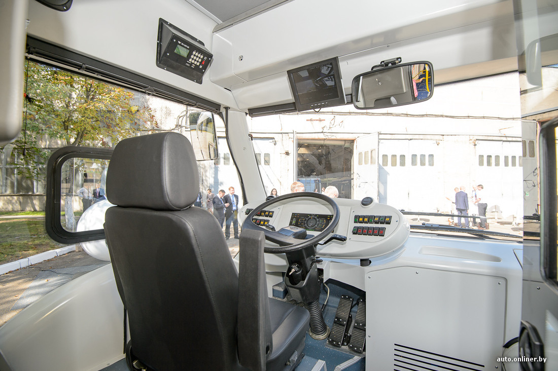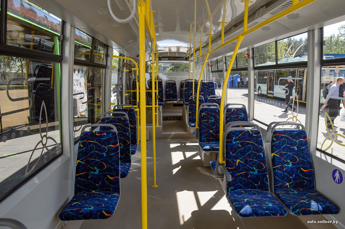 Представленные новинки оснащены кондиционером (только в кабине водителя), видеонаблюдением, медиасистемой, розетками для подзарядки мобильных устройств пассажиров. Запас хода составляет 12 километров, но конструкторы говорят, что увеличить его не проблема: было бы желание заказчика. За заряд отвечает суперконденсатор производства китайской компании. Их тоже планируют выпускать в Беларуси (в индустриальном парке «Великий камень»). Зарядка будет производиться на конечной и, предполагается, займет 5—7 минут.
