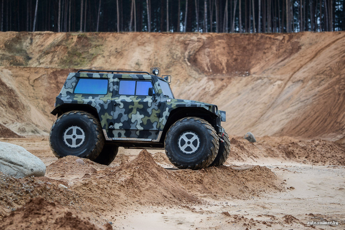 Предполагаемая максимальная скорость — 70 км/ч. Хотя сам производитель уверяет, что с шинами низкого давления (0,1—0,5 бара), произведенными на «Белшине», скорость на таком автомобиле воспринимается абсолютно иначе: движение уже на 50 км/ч кажется слишком быстрым.