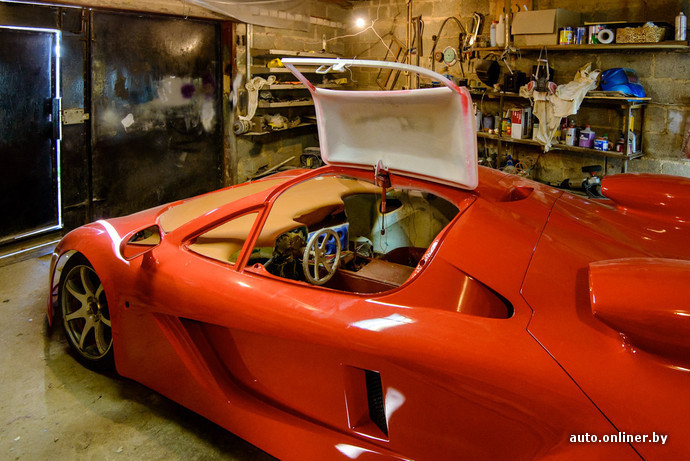 История молодого человека из Солигорска и его разработки буквально взорвала интернет. Даниил по своим чертежам построил то ли McLaren (как изначально позиционировал автомобиль автор), то ли Lamborghini (сейчас машина продается в соответствующем разделе на «Автобарахолке»). Внешне модель действительно выглядит как суперкар: двигатель расположен сзади, двери поднимаются вверх, есть воздухозаборники и другие элементы. Интересно, что в качестве «донора» использовался Peugeot 806. Парень планировал также поработать над салоном, приборной панелью, креслами.