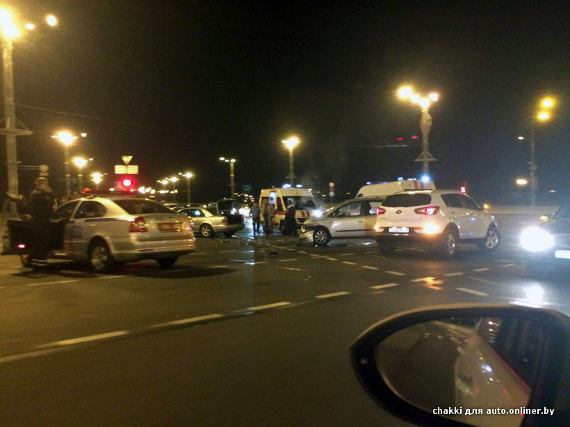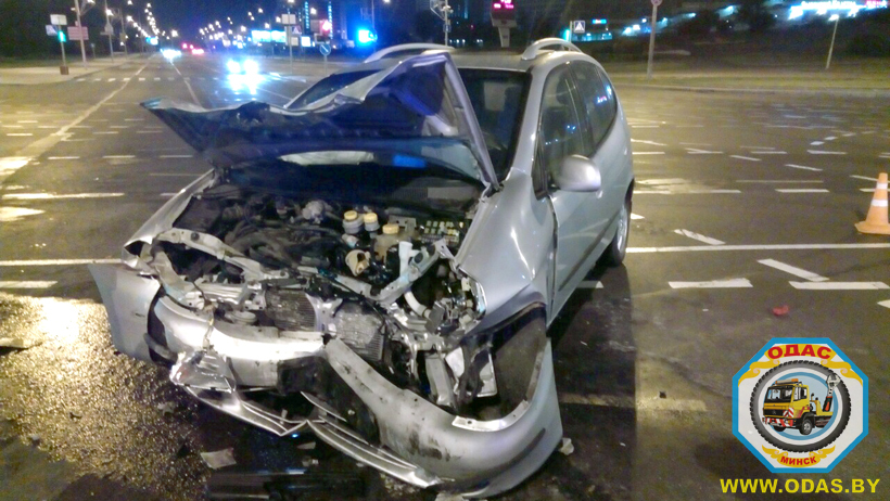 Минувшей ночью на перекрестке проспектов Победителей и Машерова в Минске произошло серьезное ДТП. Столкнулись автомобили Chevrolet и Audi, сообщили корреспонденту Onliner.by в Объединенной дорожно-аварийной службе. На место экстренно прибыли сотрудники ГАИ и скорой помощи.