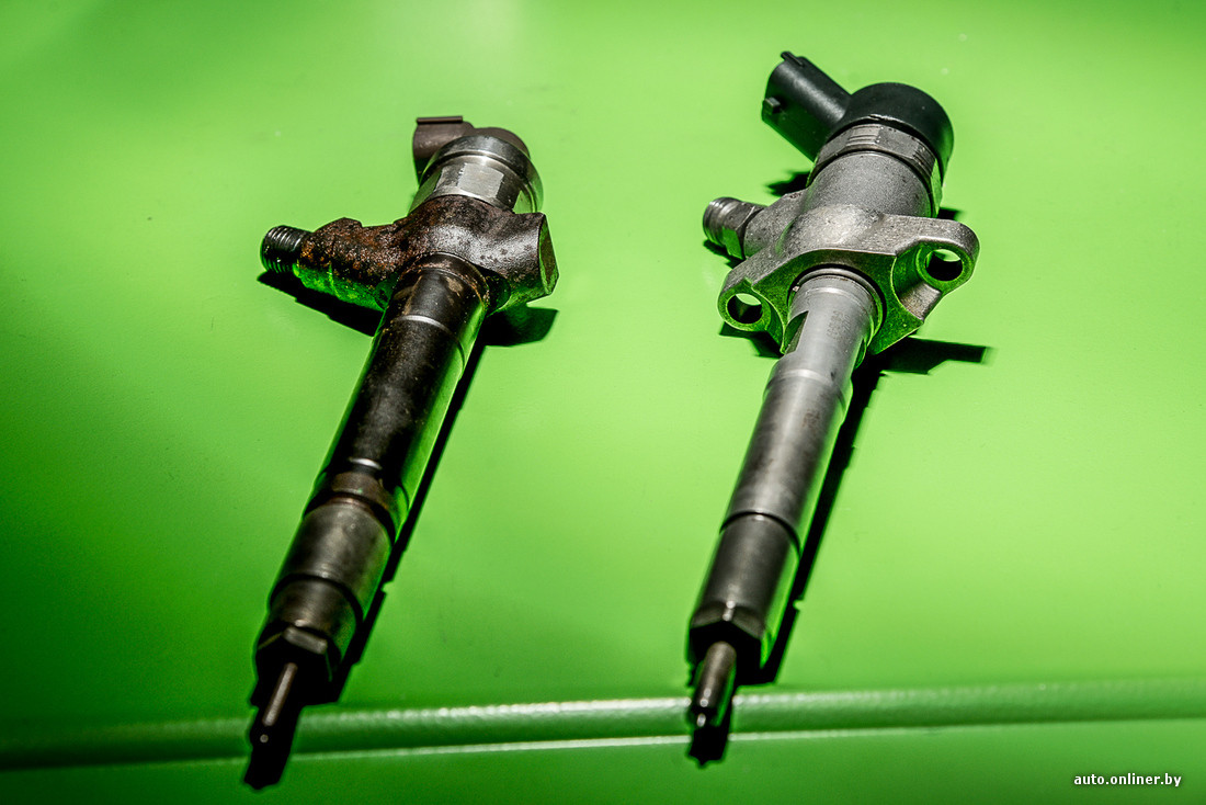 Дмитрий уверяет — старые беды повторяются и сейчас: «Принято считать, что с наступлением холодов достаточно купить солярку „Арктика“, добавить какую-нибудь присадку и можно ездить. Но оказывается, не все так просто. Наиболее опасным недостатком использования керосина и разных присадок является значительное снижение и без того невысокой смазывающей способности дизтоплива. Улучшение таким образом низкотемпературных свойств солярки приводит к другой проблеме — повышенному износу ТНВД и форсунок из-за недостатка в топливе смазывающих компонентов. В результате ресурс главных элементов топливной аппаратуры сильно снижается, повышается вероятность их выхода из строя, что приводит к дорогостоящему ремонту. Автопроизводители говорят об использовании чистого фильтра и хорошего топлива. Все, больше ничего — третьего компонента нет. Тут мы опять возвращаемся к вопросу о качестве нашей солярки. Но максимально низкая температура для зимнего топлива made in Belarus уже была доказана экспериментально в независимой лаборатории: „предельная температура фильтруемости“ составила от –20 градусов до –36. До сих пор находятся водители, которые добавляют в ДТ бензин, керосин или масло — якобы чтобы не замерзло. На современных системах устанавливают дизельные пьезо-форсунки, которые не приемлют никаких добавок, так как из-за этого меняется процесс сгорания, температурный режим, смазывающие свойства. В итоге перекаливаются распылители, расплавляются уплотнительные шайбы под форсунками, выхлопные газы начинают поступать под капот. У меня даже есть экспонат — дизельная форсунка, которая из-за повышенной температуры (добавили бензина) оплавилась, литой металл ужался и сделался короче на 1 сантиметр».