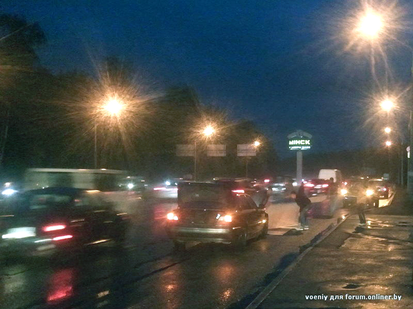 Погода вчера вечером была унылая: дождливо, ветрено и холодно. В час пик на выезде из города в направлении трассы М3 (Минск — Витебск) образовался небольшой затор, водители торопились по домам. Внезапно из очередного проезжавшего автомобиля с грохотом на проезжую часть попадали листы ДСП. Из машины вышла пожилая пара, которая с ходу не знала, что же делать в сложившейся ситуации.