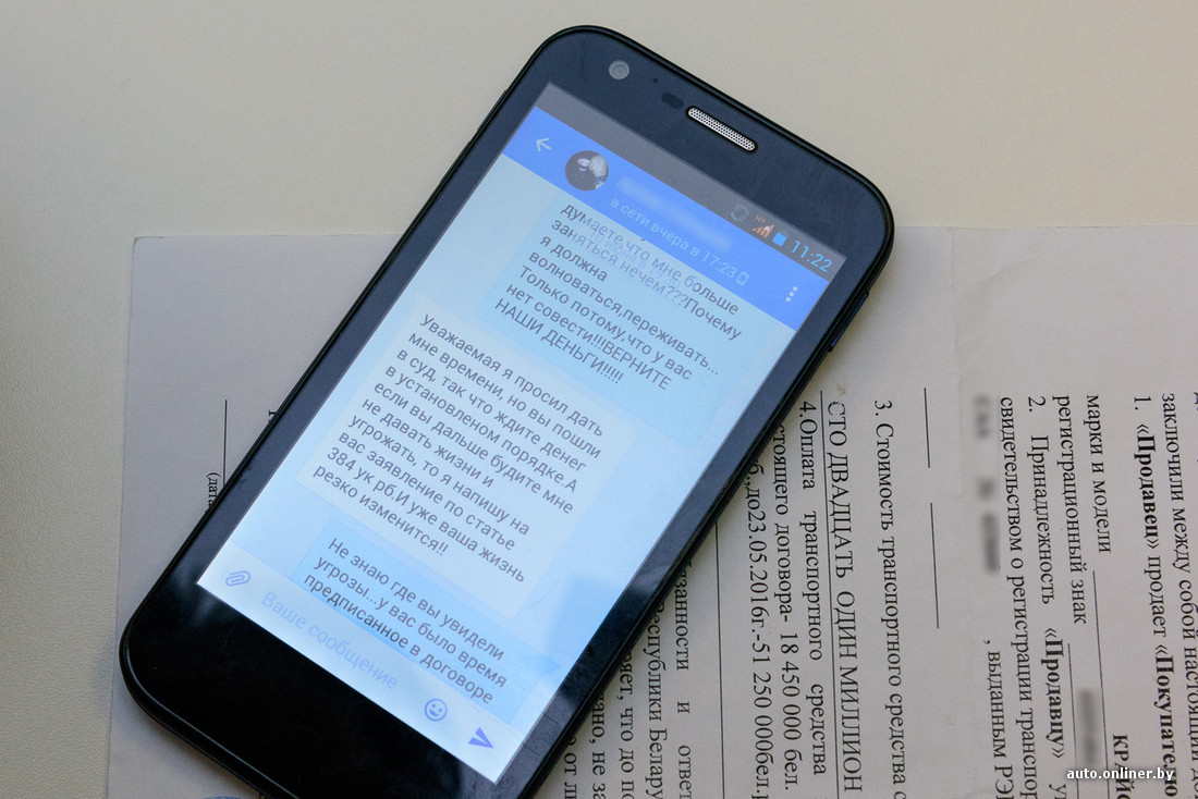 — Обеспокоенные, мы стали искать концы, в соцсети «ВКонтакте» я нашел профиль этого человека, — рассказывает продавец Chrysler. — Ответил он не сразу, а лишь через пару недель — в середине мая. Утверждал, что якобы находился в командировке, у него возникли финансовые трудности, но по договору обещал расплатиться. К тому времени я уже написал заявление в Центральное РУВД Минска.