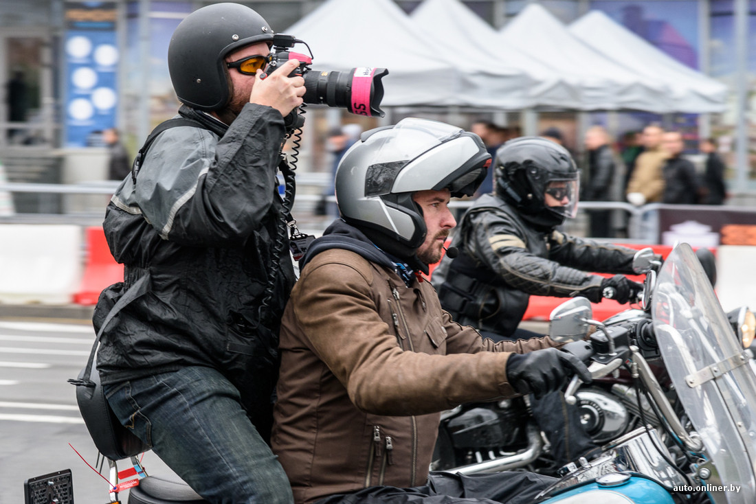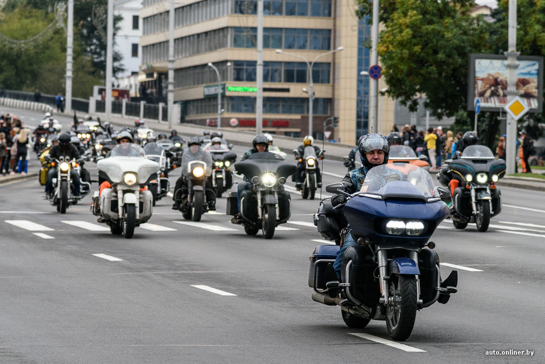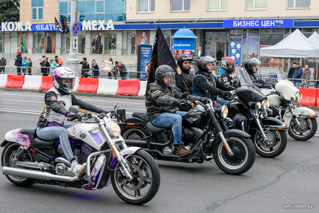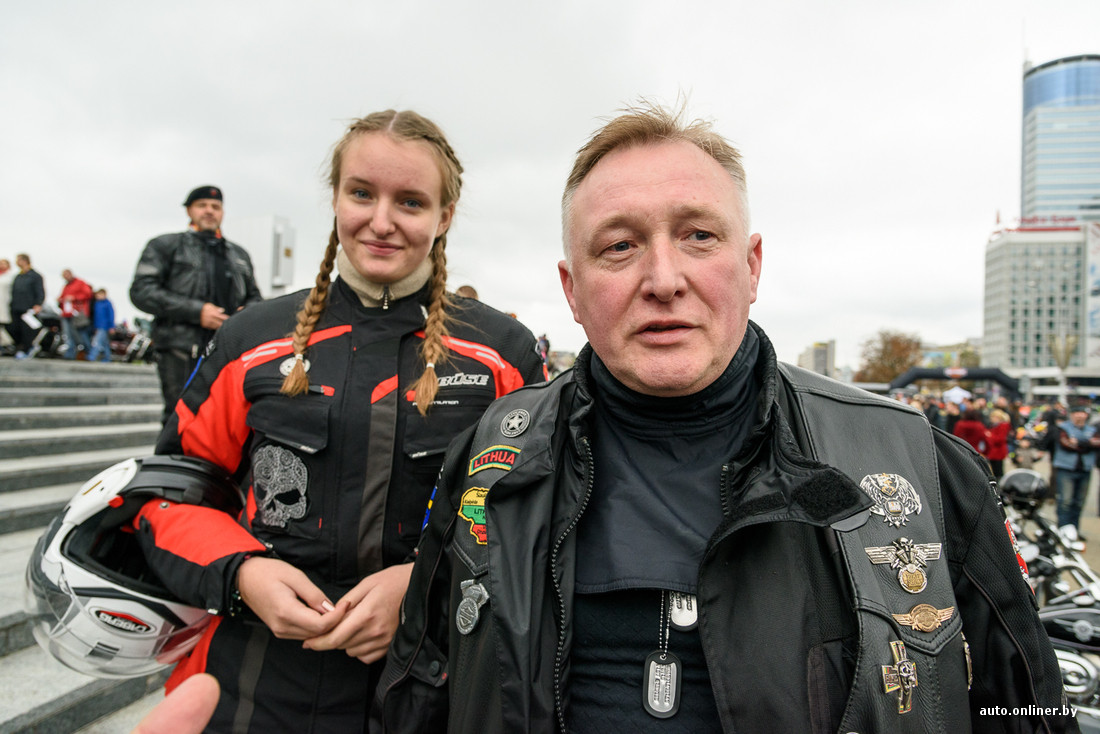 Следом проехали около трех тысяч мотоциклистов. В основном это были байки с белорусскими и российскими номерами. На некоторых мотоциклах развевались флаги Германии, США, Испании, Португалии и даже Новой Зеландии. Когда мы подошли к байкеру с немецким флагом, тот признался, что сам из Москвы, но «нужно было показать международное присутствие».