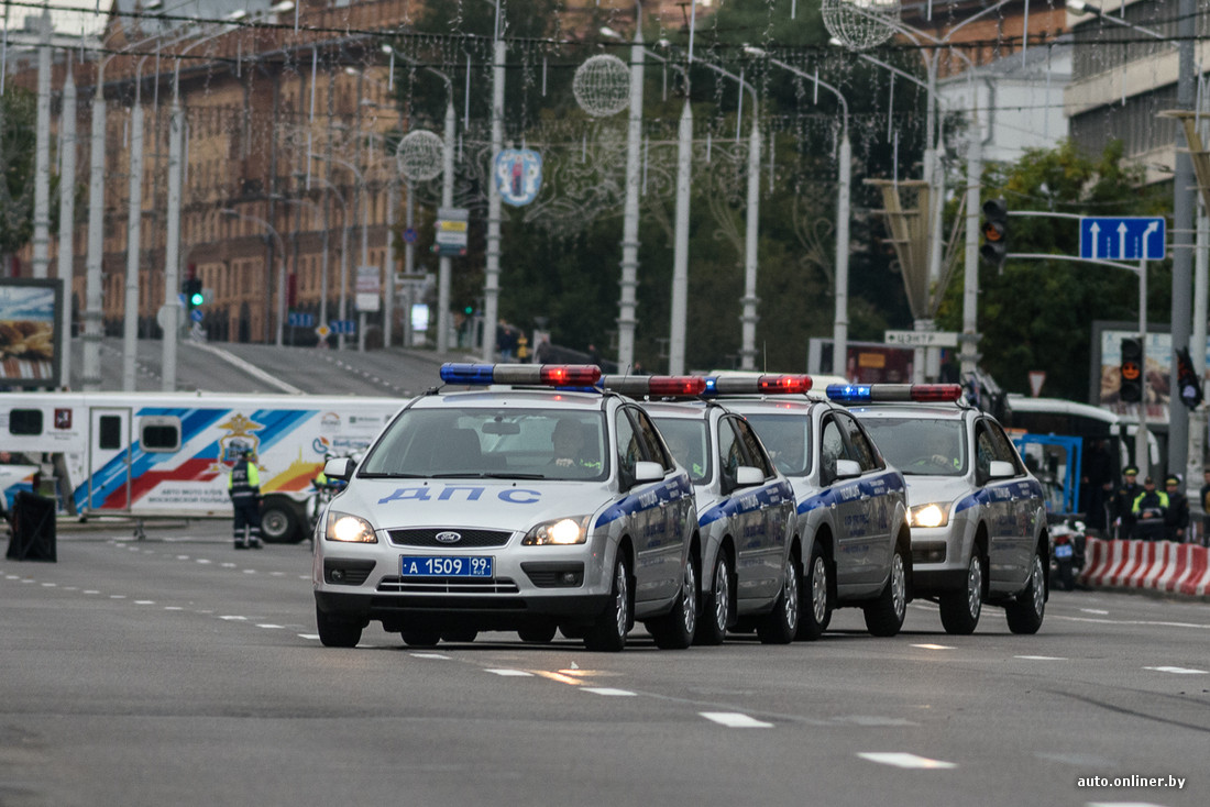 Гвоздем номера стал проезд сотрудников ГИБДД из Москвы на Ford Focus. Инспекторы сумели показать высший пилотаж, двигаясь на двух колесах. «За рулем действующие инспекторы, это не каскадеры», — не уставал повторять в микрофон ведущий.