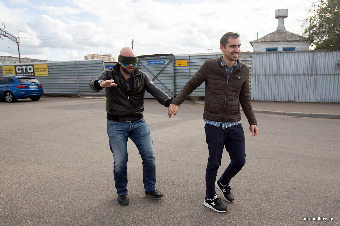 Стать первооткрывателем рубрики суждено было Александру, который на форуме больше известен как MEgBEg. Когда владелец Bentley отзвонился и сообщил, что прибыл на исходную, мы завязали читателю глаза, усадили в нашу машину и отправились к тестовому купе. Уже сидя в Kia, которая выполняла роль шаттла, Александр отметил: «Весьма необычно ощущать себя незрячим во время движения». Пару минут, и мы на месте. Помогаем участнику тест-драйва вылезти из автомобиля и за руку ведем к Bentley. Двигаясь маленькими шажками, боясь оступиться, Александр постоянно спрашивал, нет ли на его пути преград. Еще бы, не каждый раз ходишь по улице средь бела дня, не видя ровным счетом ничего.