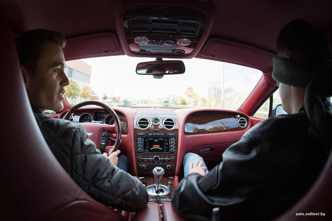 Следующим на очереди был самый знаменитый на форуме Onliner.by владелец Audi A4 — Mike216. Езда с закрытыми глазами на машине, по словам Михаила, напоминает «нахождение в вакууме». Усевшись на пассажирское место Continental GT, он отметил отличные кресла премиального купе: «Сиденья очень хорошие. С правильной поддержкой!» После первого старта со светофора Mike216 сразу решил, что здесь не 6-цилиндровый двигатель. «Либо 8, либо 12 цилиндров», — без сомнений заявил Миша.