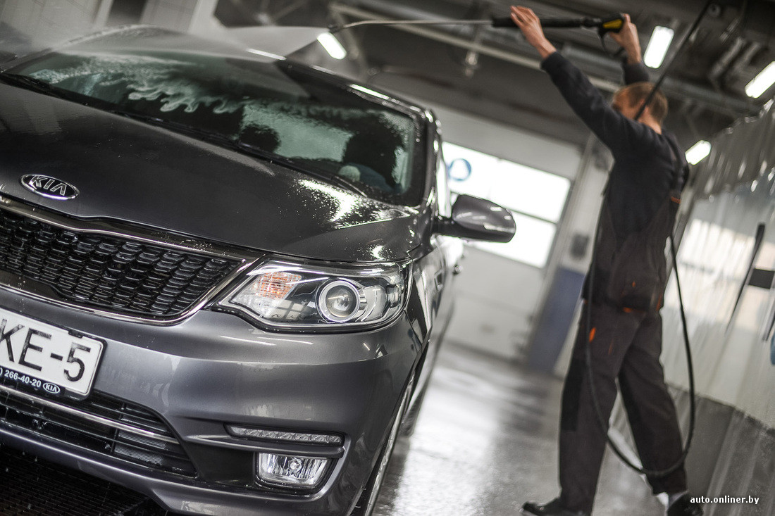 Мы проверили действие защитной технологии на кузове испытуемой Kia. Спустя три дня после мойки кузов не потерял гидрофобности — то есть дождевая вода не оставалась лежать на поверхности пленкой, а сбивалась в большие капли, которые сдувало ветром при разгоне. Особенно удобна обработка лобового стекла — щетки во время осенней мороси можно не включать. По заверениям сотрудников компании, защитную мойку можно чередовать с обычной без потери свойств.