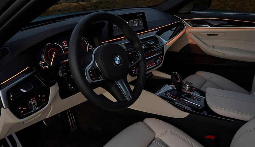 Габаритная длина G30 составляет 4935 мм, ширина — 1868 мм, высота — 1466 мм, а колесная база равняется 2975 мм. Бизнес-седан стал на 36 мм длиннее, на 6 мм шире и на 2 мм выше. База увеличилась на 7 мм. Как уже сообщалось, новинка стала примерно на центнер легче предыдущей «пятерки». Скинуть лишние килограммы удалось благодаря широкому применению алюминия, облегченной стали и магния.