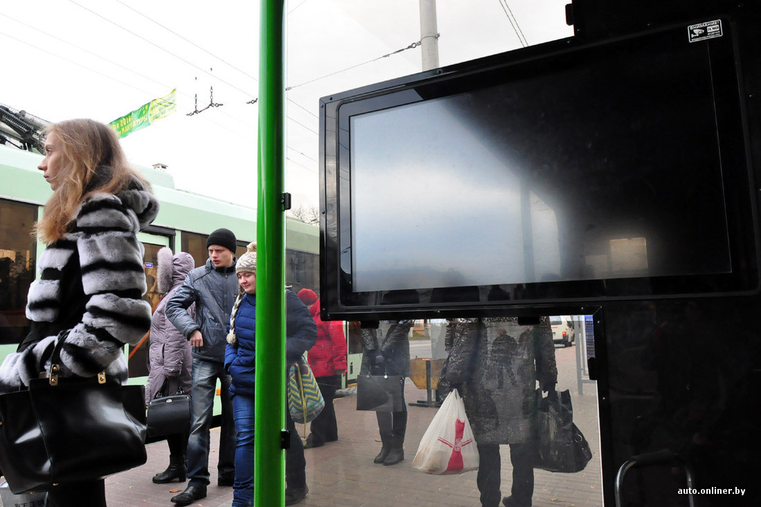 Периодически электроника немного оживает. По фасаду пробегает строка с названием остановки — и снова надолго гаснет. Один из экранов иногда просыпается и принимается крутить клип о красотах Гомельщины, но сил хватает ненадолго. Порой включается камера на потолке и, к радости детей, транслирует картинку на дисплей. Такому странному поведению приборов имеется объяснение.