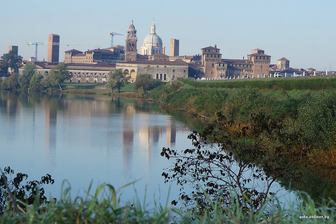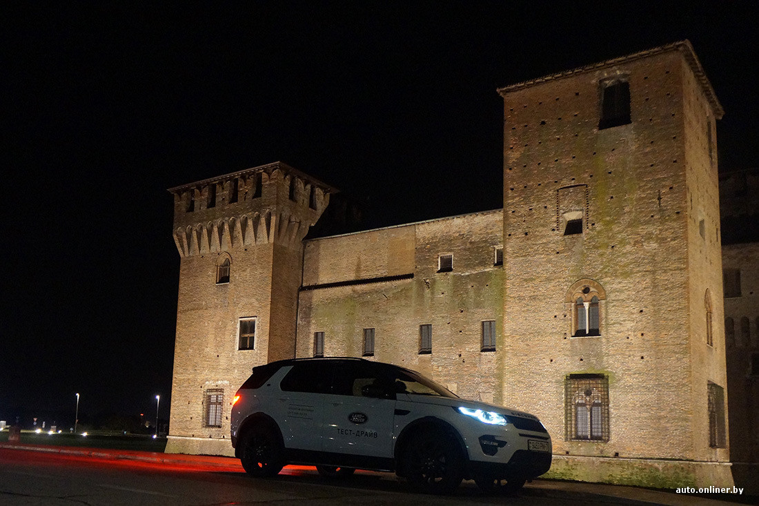 К концу третьего дня мы окончательно привыкли к длительным перегонам, продолжая врастать в сиденье Discovery Sport. Для кого-то наш маршрут покажется странным, однако мы нарочно избегали популярных среди туристов мест. Так, за бортом Land Rover остался поворот на Венецию, мы пропустили развязку, ведущую к Падуе, миновали Верону. А вот недооцененные красоты нас манили. Конечно, замками итальянца не удивить, но белорусы, воспитанные на воспоминаниях о славной истории Несвижа и Мира, настроили навигаторы на Мантову (Мантую). Именно там стоит укрепленный город, в котором в разные времена переплетались судьбы семейств Гонзага, Медичи, Рубенса, Мантенья. Совсем недавно исторический центр Мантуи был включен в число памятников Всемирного наследия человечества. Мы попросили автомобили попозировать на фоне зданий, названных идеалом итальянского Ренессанса, те не отказали в такой чести.