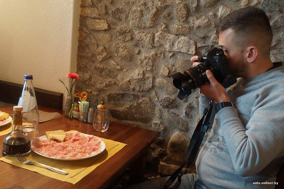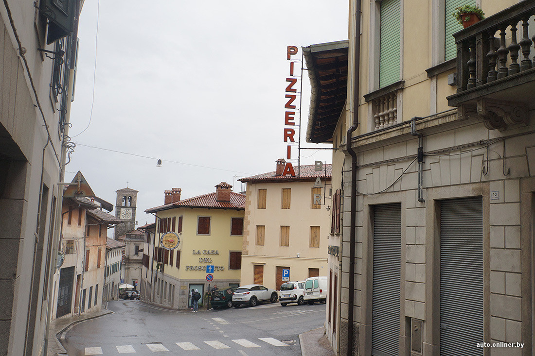 Одним словом, покидать машину не хотелось. Осталось лишь желание ехать — только вперед, хоть до самой Италии. К сожалению, она была «не за горами» — если говорить образно. На самом деле, если говорить буквально, — Италия была непосредственно в самих горах. Тоннели Австрии остались позади, нас встречали южные Альпы и городок Сан-Даниэле, славящийся своим особенным способом приготовления прошутто. Грех туда не заехать.