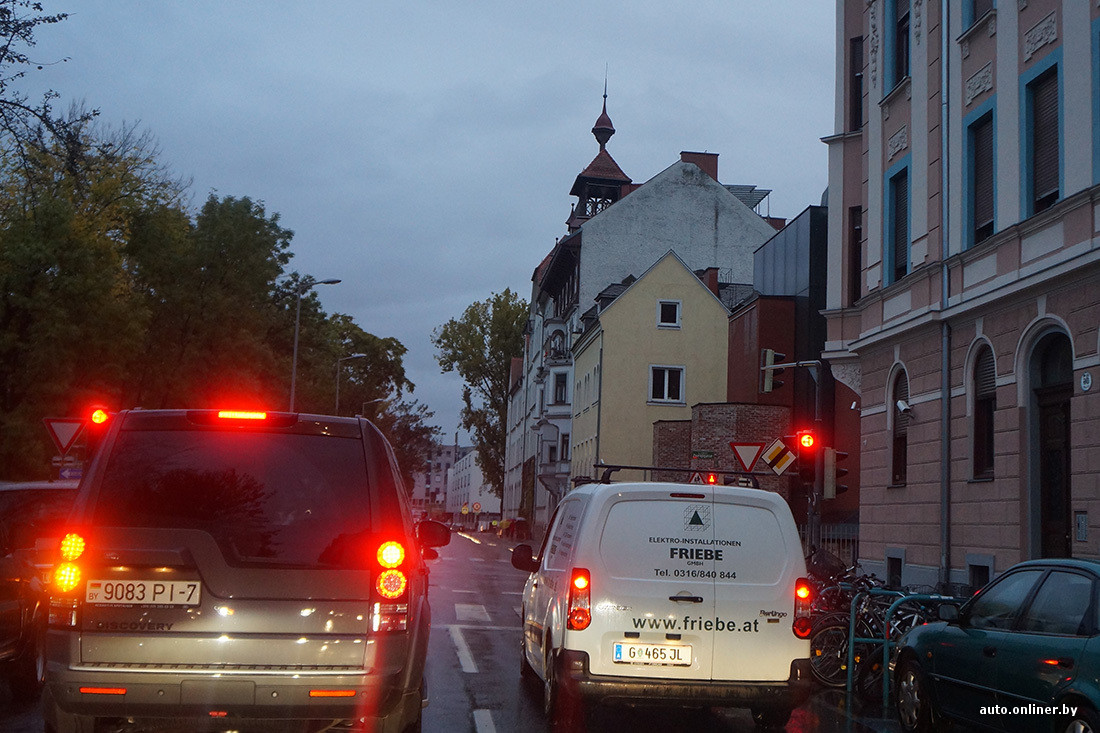 Польша, Чехия, Австрия — за 9 часов нам предстояло проехать по территориям трех государств. Путь долог, надо как-то развлекаться. Самое время поискать недостатки в автомобиле. Конечно, среди представителей премиального сегмента они малозначительны, однако и умалчивать о них нет смысла. Например, мы не нашли на панели Evoque полочки для телефона. Да, есть бардачок, имеется два подстаканника, ниша в подлокотнике. Но на видном месте оставить мобильник нельзя. Заднее окно показалось довольно малым, при движении задним ходом во время парковки на него полагаться не приходится. Эту проблему решает камера заднего вида. На руле — много кнопок, но нет выемок под большие пальцы. Возможно, все дело в непрямых руках, однако во время включения «поворотника» мы случайно задели лепесток, не нарочно понизив передачу. Посадка в Evoque ниже, чем у Discovery и Discovery Sport, она лишь намекает на тот самый «капитанский мостик», коим славятся Land Rover. Еще не совсем понятна задумка дизайнеров, разместивших подсвеченную полочку за центральной консолью. Мы положили туда энергетические батончики для перекуса.