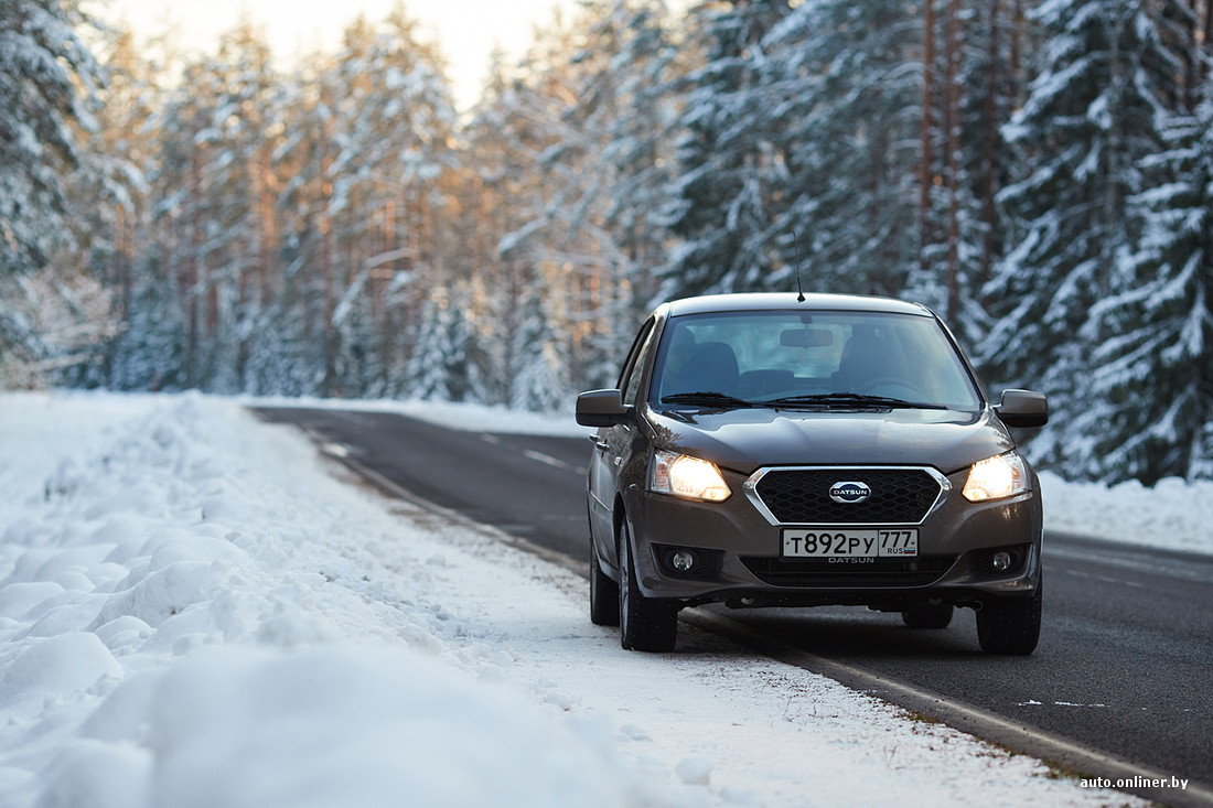 Учитывая, что мы вообще никогда не тестировали Datsun, расскажем вкратце о модели on-DO. Машина построена на платформе Lada Granta, и, закрыв глаза, нельзя понять, едешь ты на машине российского бренда или же на «близнеце» с японским именем. По сути, отличия автомобилей заключаются только в дизайне. В этом плане on-DO, на наш взгляд, выигрышнее. Особенно сзади. Да, Datsun не претендует на звание «самого красивого» седана малого класса, но, в отличие от «Гранты», его не хочется отправить на конкурс «самый уродливый седан». На модель устанавливается 1,6-литровый атмосферный мотор мощностью 87 л. с. Этот «8-клапанник» ставят на базовые Granta. 16-клапанный мотор для Datsun не предусмотрен (в отличие от Lada). Клиренс у on-DO чуть больше.